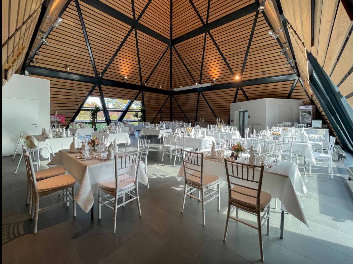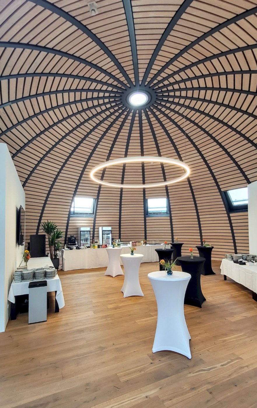 Einzigartige Architektur trifft auf skandinavisches Ambiente. Die Anlage bietet modulare Raumkonzepte für Firmenevents, Workshops, Geburtstage und Hochzeiten.