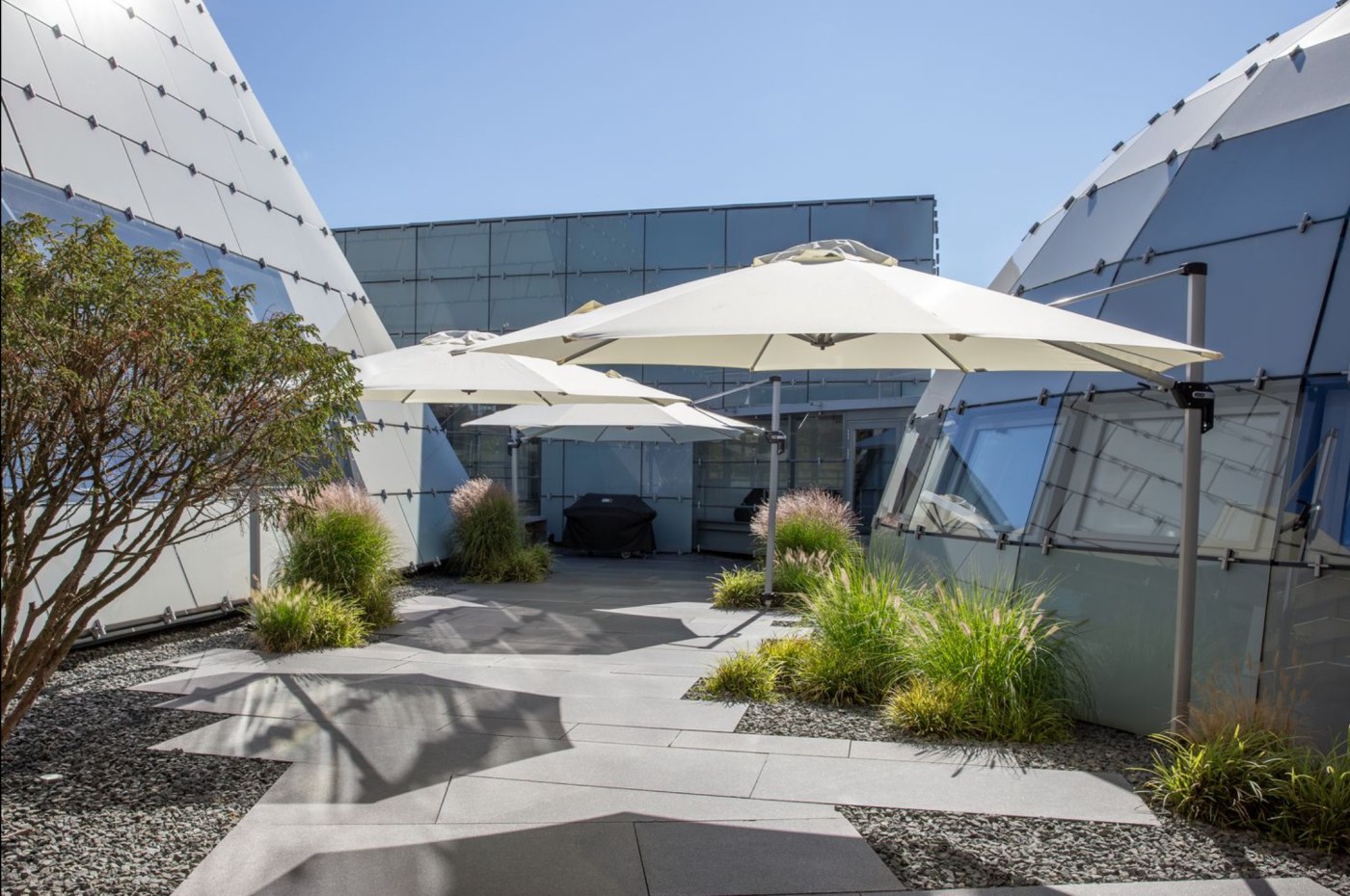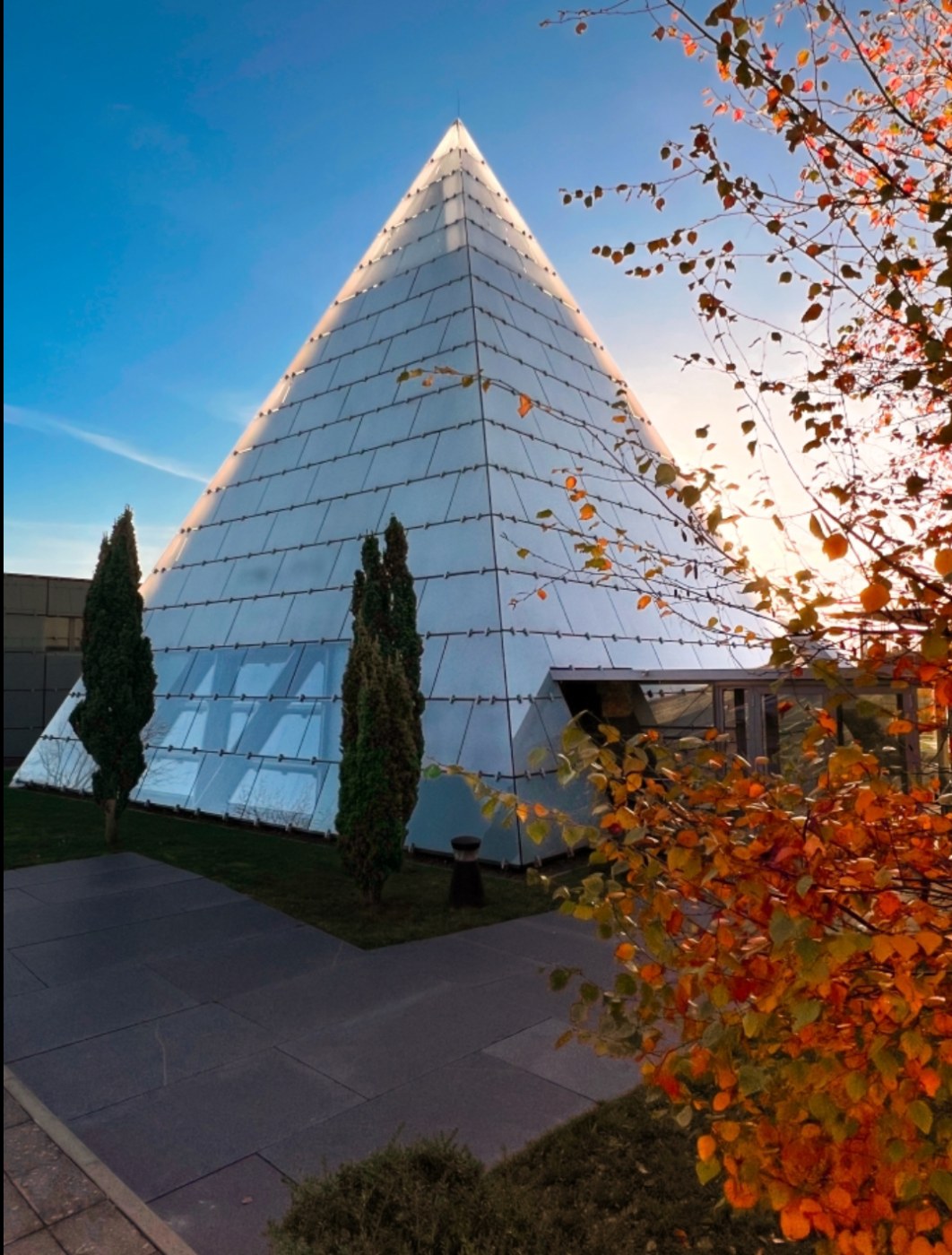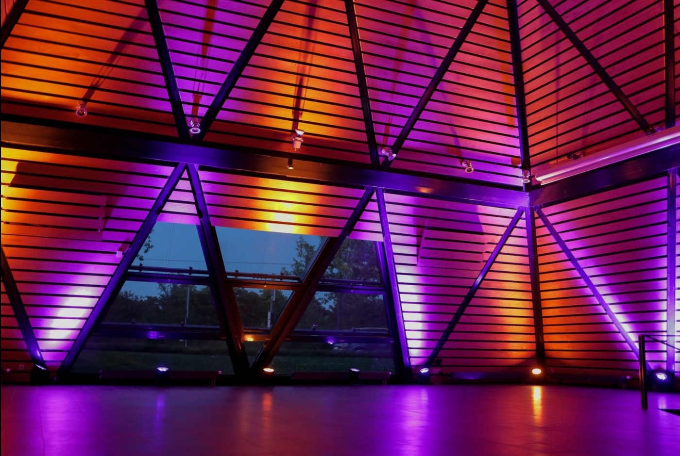 - Räumlichkeiten & Kapazitäten: Pyramide (185 qm, bis 240 Personen), Kuppel (117 qm, bis 156 Personen), Konferenzraum (80 qm, bis 26 Personen) sowie ein nutzbarer Innenhof.